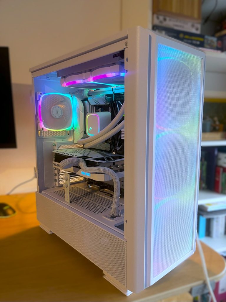 - Koeling case: 2x Lian Li 140mm aan de voorzijde en 1x Thermalright 120mm RGB aan de achterzijde.