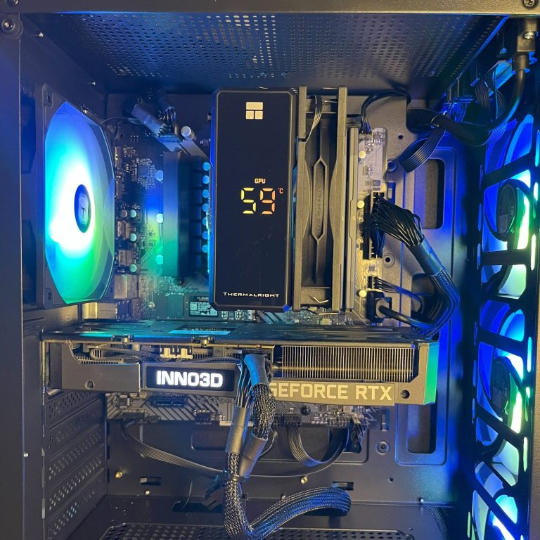 - Koeling case: 3x Thermalright 120mm RGB aan de voorzijde en 1x Thermalright 120mm RGB aan de achterzijde.