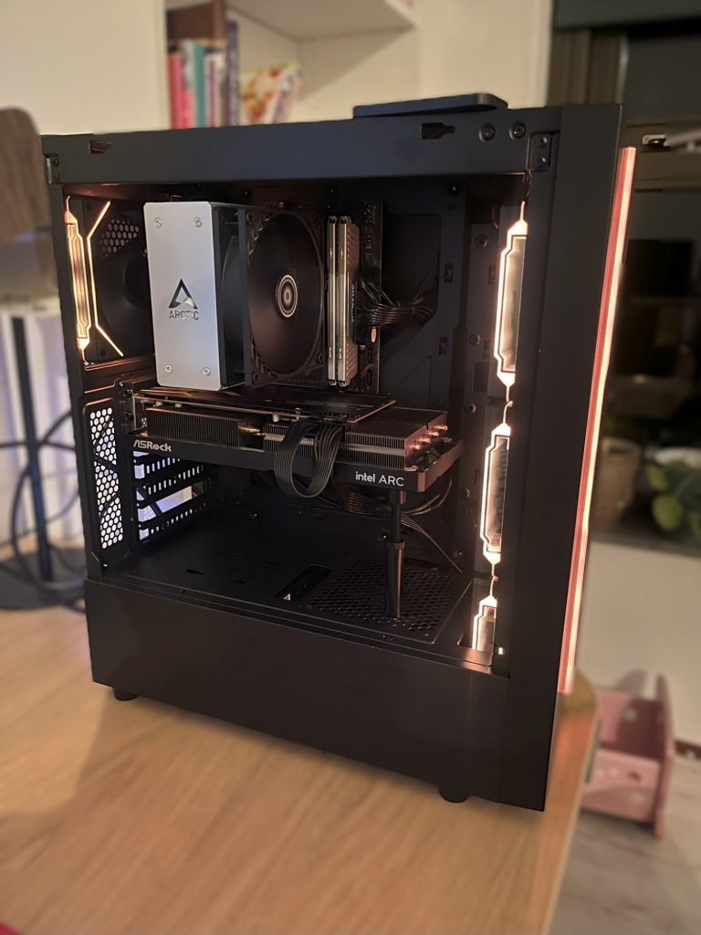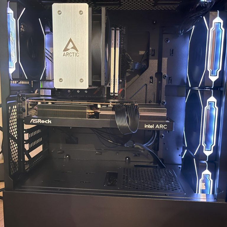 - Grafische kaart: Intel Arc B570 kaart met supersnel 10GB (!) grafisch geheugen. Vergelijkbare prestaties met een Nvidia GeForce 4060TI!